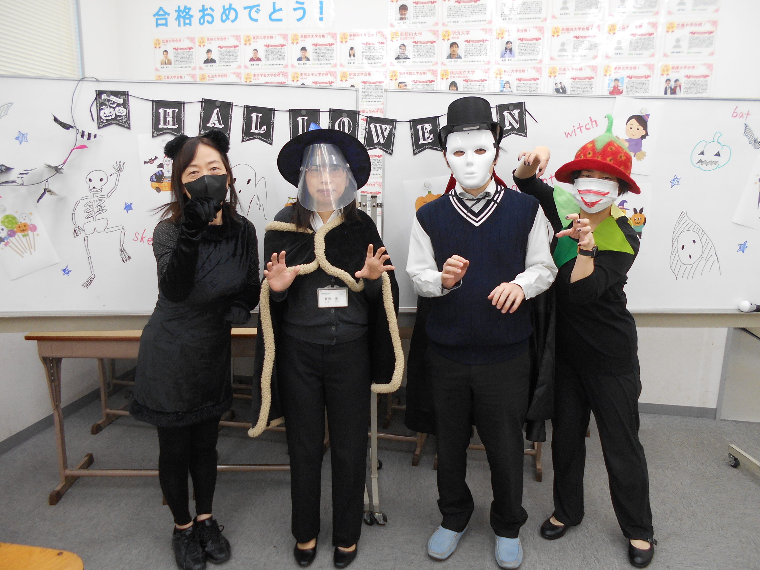 こちらは当日のハロウィンパーティを担当された先生方です。まさにハロウィンですよね!!