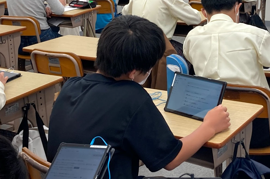 生徒さんたちは、150分間、手元にあるタブレットから一人ひとりの理解度に応じて出される問題に集中して取り組んでいます!
