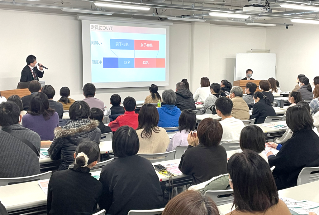 当日は、附属中入試の概要や合否分析のほか、附属中に進学される生徒さんを対象とした附属中コースのご説明もさせていただきました。